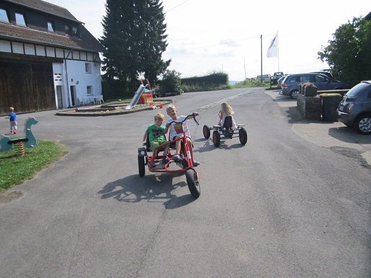 Für Ihre Kinder ist Bestens gesorgt: Sie können unbeschwert toben und auf Entdeckungstour gehen auf unserem weitläufigen Gelände oder dem Spielplatz und der Spielscheune. Oder steht ein Rennen an mit Roller, Kettcar und Co?